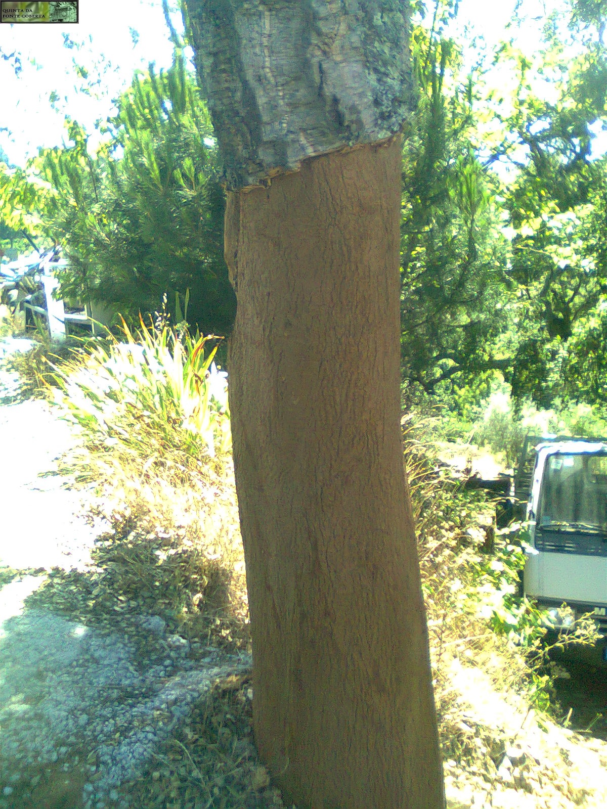 Passados dez anos da última extracção foi este mês mais uma tiragem de cortiça nos três Sobreiros da Quinta.