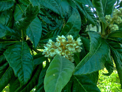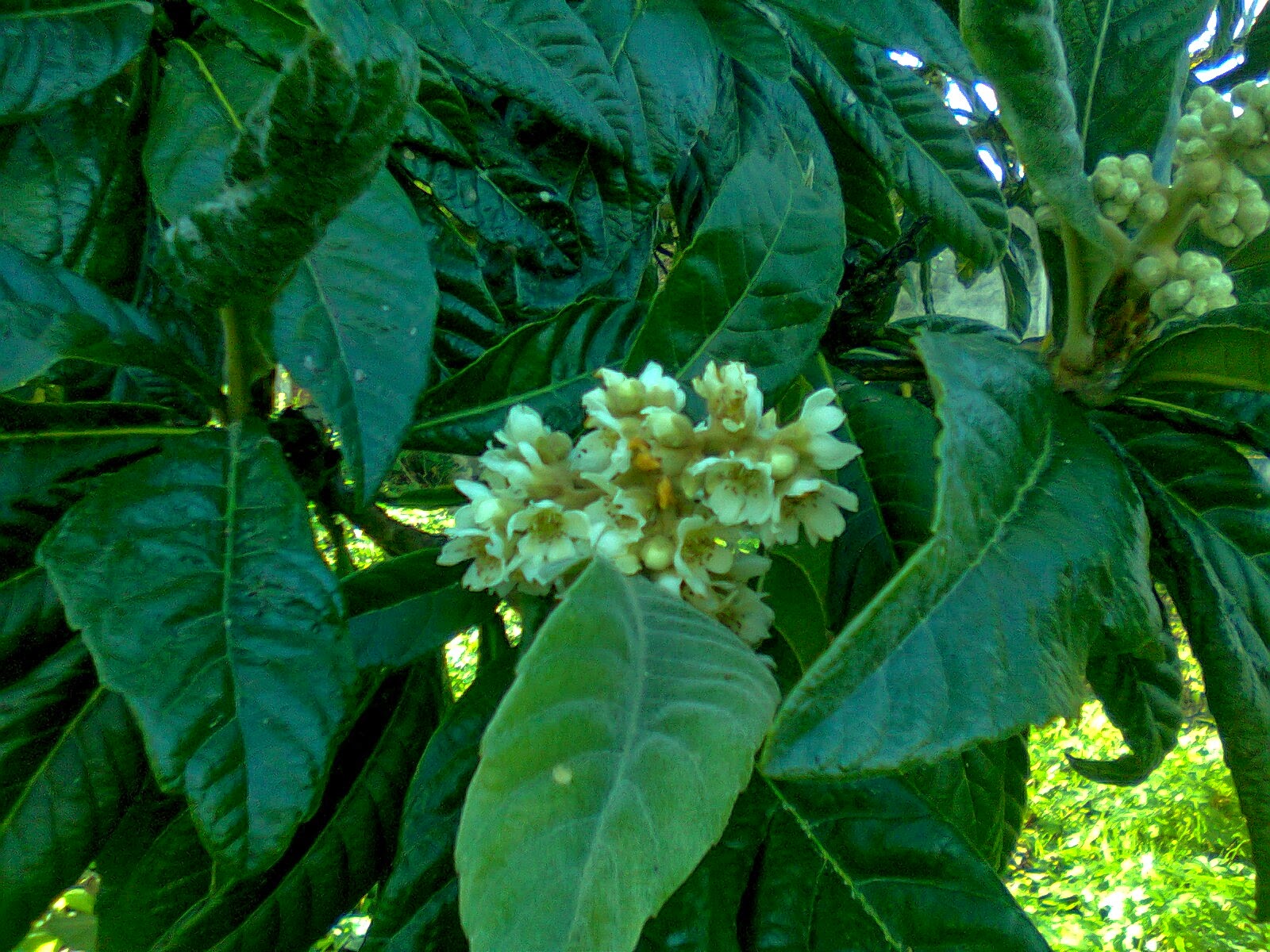 Diferente das demais árvores frutíferas, as suas flores aparecem no outono e início do inverno e os frutos amadurecem no final do inverno e início da primavera. As flores têm cerca de 2 cm de diâmetro, são brancas, com cinco pétalas, produzidas em cachos com três a dez flores.
